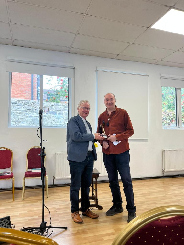 I’m delighted to announce that I’ve won the NurePoets Corner Award 2025 with my poem ‘Unmoored’. The judge was the esteemed John F. Deane, which makes it a huge honour for me. The award was presented during an afternoon-long celebration of poetry and music that formed part of the weekend-long Eigse Terenure Festival. We were treated to poetry from John F. Deane and Emmet Kirwan, and poetry-inspired music from Eileen Gogan. Peter Coghlan was our excellent MC and the award itself is a beautiful sculptural piece called ‘Mystery Key’ created by Ian Pollock.